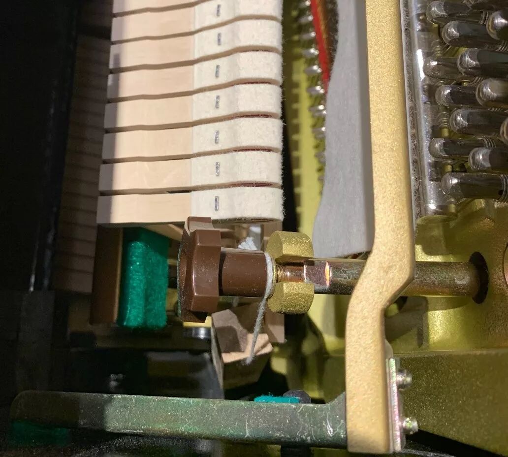 那怎么使用呢?很简单。如下图,打开钢琴顶盖板,两边各有一个旋钮,把樟木条挂上去即可,不过小心不要手抖掉下去了哦。