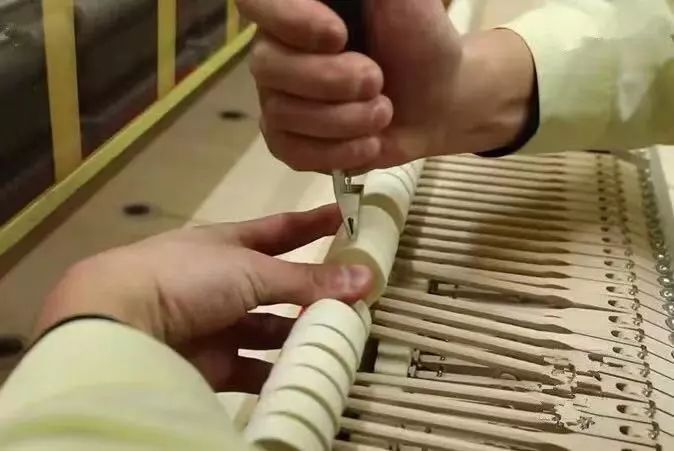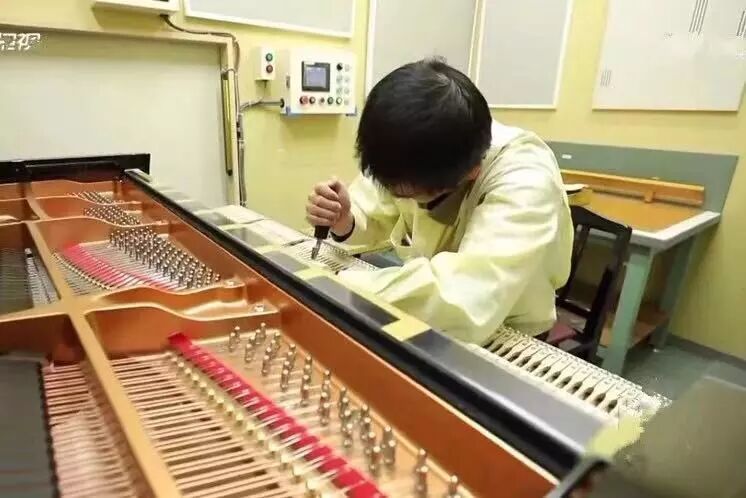 在经过背夹制作安装、音板固定、线轴安装等二十多个环节之后,一台钢琴进入了整音环节。